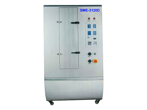 SME-3120D是为提高清洗效率而设计的同时清洗2张网板的专用网板清洗机器。主要应用于比较容易清洗的油墨和网孔较大的网板清洗。机器采用压缩空气为动力,以360°旋转喷淋清洗和漂洗方式,有效清洗印刷后网板上残留的油墨,确保丝印网板板面和网孔清洁;SME-3120D对应网板尺寸达1200x1200mm。