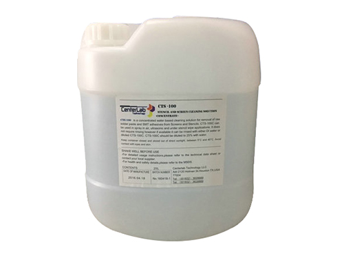 | 水基钢网清洗液 | CTS-100 | 20% | 白色透明 | 20L或25L | 直接使用液 |